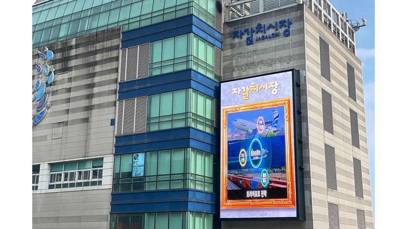 부산광역시 시설관리공단 자갈치시장사업소는 9월부터 부산광역시 선도기업 ㈜케이시스(대표이사 천병민)와 함께 부산 중구 자갈치시장 건물 외벽에 ‘가로 6.5m, 세로 약 12m 규모의 대형LED전광판’을 구축했다. 전광판 전체 면적은 총 78로 건물 높이의 무려 3분의 1을 차지하며, 부산광역시에 설치된 전광판 중 세로 사이즈 최대 규모의 전광판이다. 부산국제영화제로 유명한 부산시 대표관광지 ‘BIFF(Busan International Film Festival) 광장’을 마주보고 설치되어, 위치적으로나 사이즈로나 그 의미가 굉장히 크다.