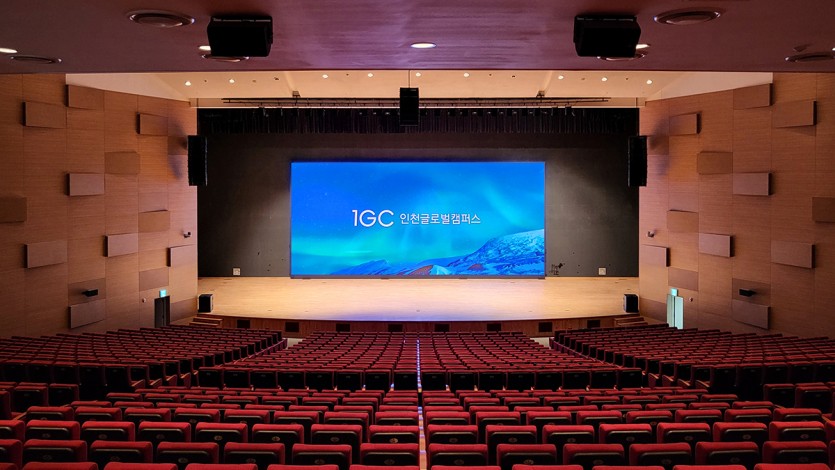 인천글로벌캠퍼스의 대강당에 구축된 LED미디어월(전광판)은 ‘가로 16m, 세로 7.2m, 총면적 115‘로 무대 면의 절반이상을 차지하여 압도적인 크기와 해상도를 자랑한다. LED미디어월(전광판)은 약 2,000석 규모의 대강당에서 인천글로벌캠퍼스의 입학설명회 · 졸업식 · 회의 · 학술대회 등 다양한 행사를 진행하는 다목적 스크린으로 활용될 예정이다. 그 뿐만 아니라 인천시를 비롯한 전국의 공공기관 · 관공서 · 재단 등에서 각종 행사 진행을 위해 인천글로벌캠퍼스의 대강당을 찾아주고 있기에 LED 미디어월의 활용도가 더욱 클 것으로 기대하고 있다.