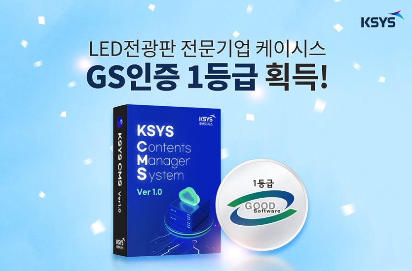 케이시스는 콘텐츠매니저시스템인 ‘KSYS CMS Ver 1.0’에 대해 GS인증 최고 등급인 1등급을 획득하였다. KSYS CMS는 케이시스의 독자 기술로 개발한 LED전광판 관리 소프트웨어로 ▲콘텐츠 재생 목록 및 일정 ▲콘텐츠 접근권한 ▲저장공간 및 사용량 등 콘텐츠 전반을 통합 관리하는 웹 기반 프로그램이다. 특히 우수한 콘텐츠 관리 기능과 사용자 니즈에 맞춘 편리한 UI 제공에서 높은 평가를 받았다.
